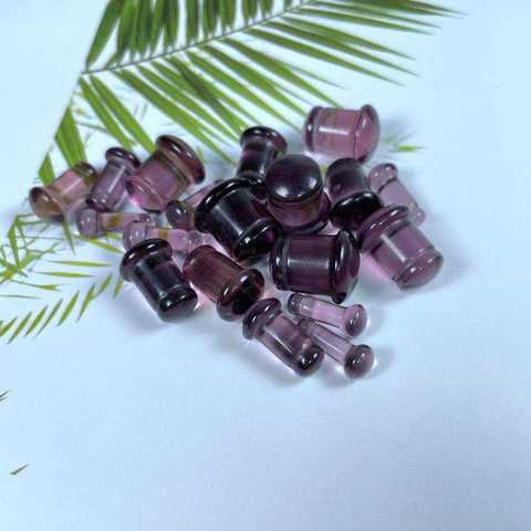 Taş kulak tak mor cam tek parlama fiş taş kulak tak kulak genişletici vücut Piercing takı